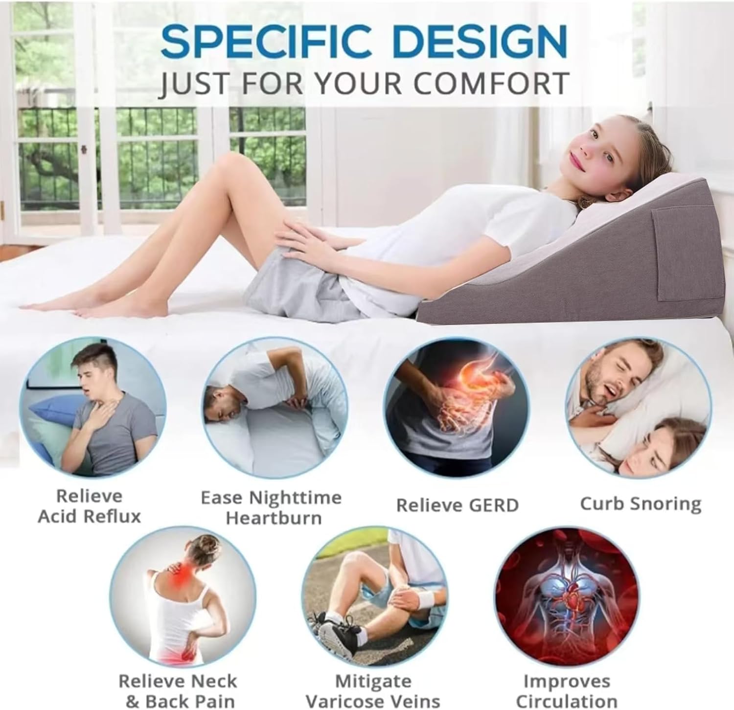 Bed Reading Pillow - Sofa Bed Wedge Pillow - Post-Op Recovery Backrest Pillow - Working Lumbar Support Reading Pillow with Removable Pillowcase Light Grey 27x20x12in